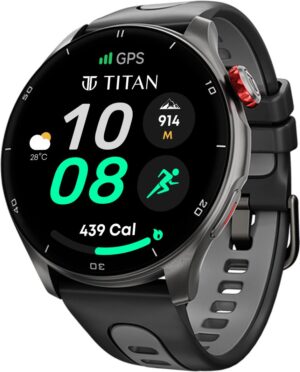 Titan Celestor|India’s Most Accurate In-Built GPS |Altimeter|Barometer|Compass|Strava Smartwatch (Black Strap, Free Size)